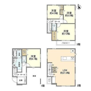 4LDK(LDK21 洋7 洋6.1 洋5 洋4.5) |