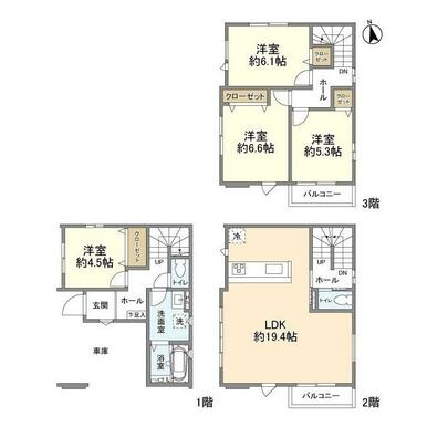 4LDK(LDK19.4 洋6.6 洋6.1 洋5.3 洋4.5) |