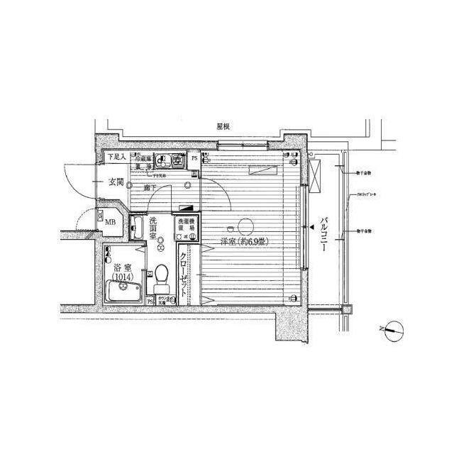 | 間取り | 1K(K 洋室6.9) | 主要採光面 | 南 |
