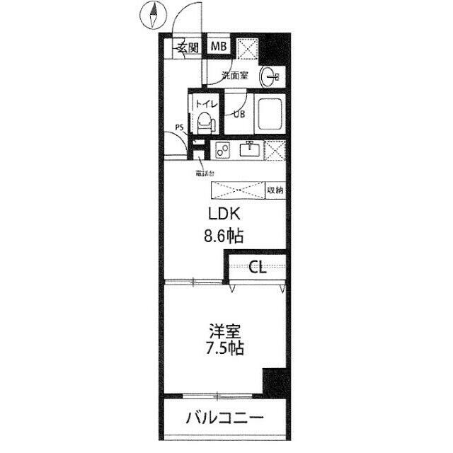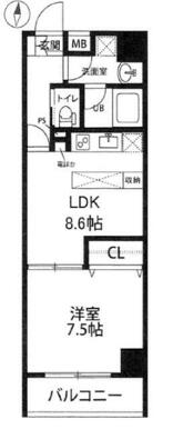 | 間取り | 1LDK(LDK8.6 和室7.5) | 主要採光面 | 南 |
