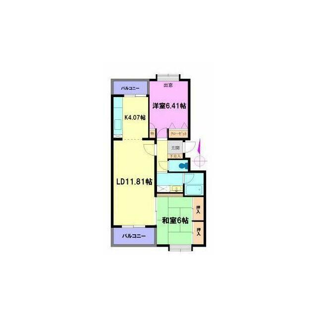 | 間取り | 2LDK(LD11.81 K4.07 洋室6.41 和室6) | 主要採光面 | 南 |