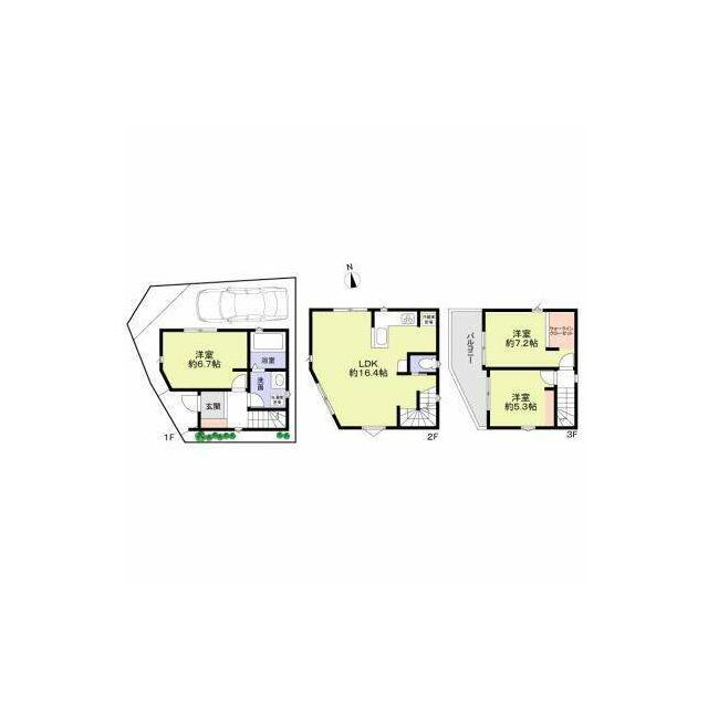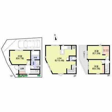 | 間取り | 3LDK(LDK16.4 洋室6.7 洋室7.2 洋室5.3) | 主要採光面 | 西 |