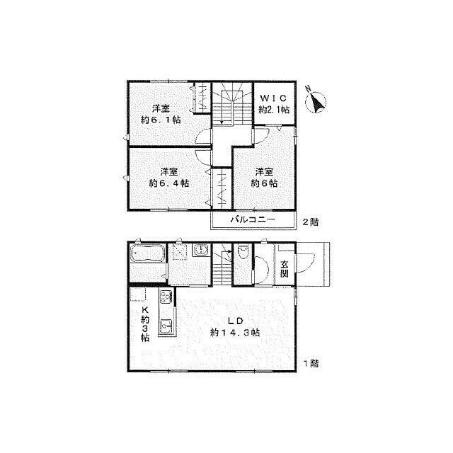 | 間取り | 3LDK(LD14.3 K3 洋室6.4 洋室6.1 洋室6) | 主要採光面 | 南 |
